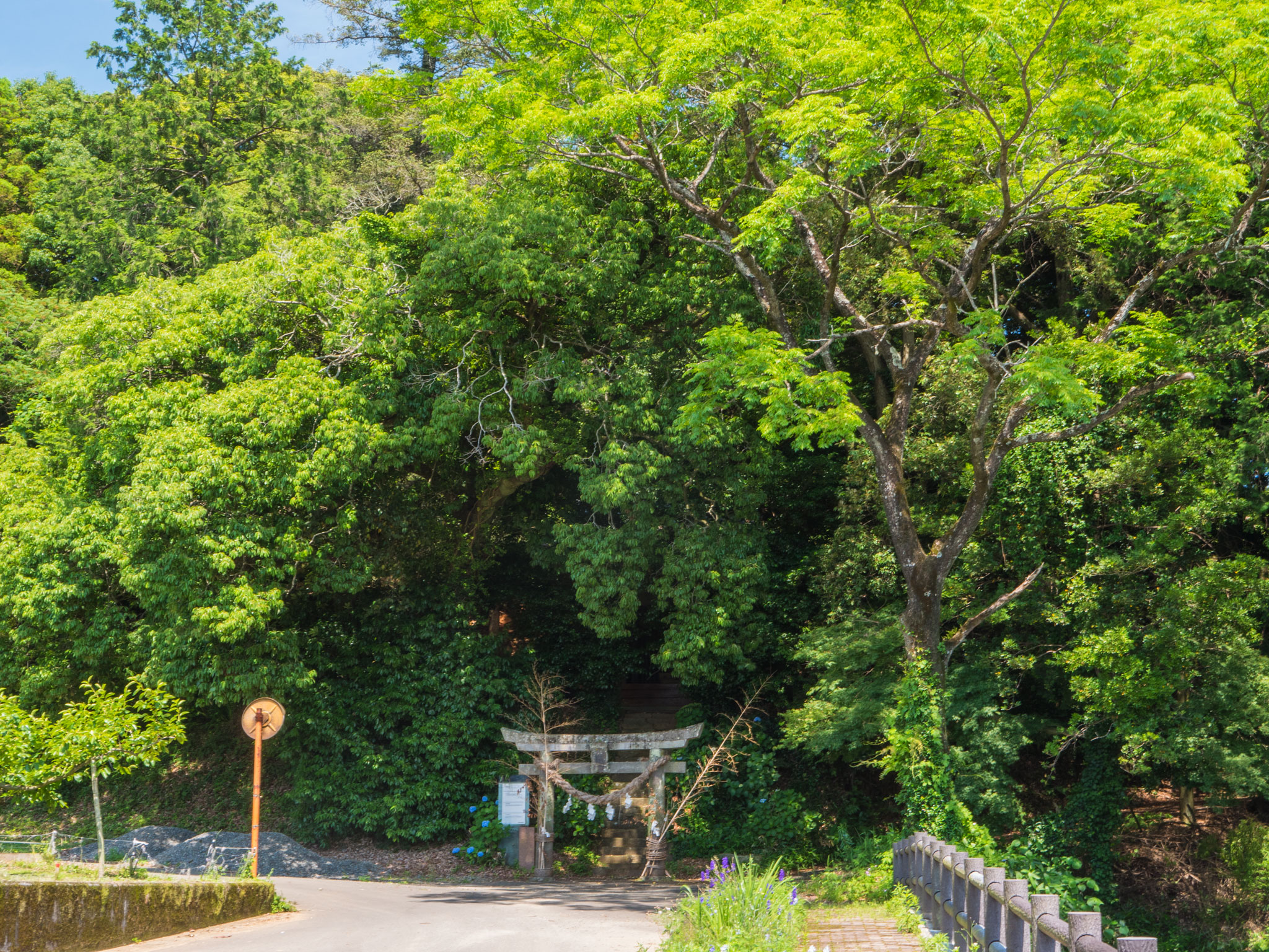 朝倉橘広庭宮跡の下に在り、高皇産霊尊を祀っています。朝倉橘広庭宮が造営された際に、建立されたと言われています。この地に朝日が射すのが遅く、朝がいつまでも暗かった為この名があります。「朝倉」の地名は、この神社に因んだものではないかと考えられています。