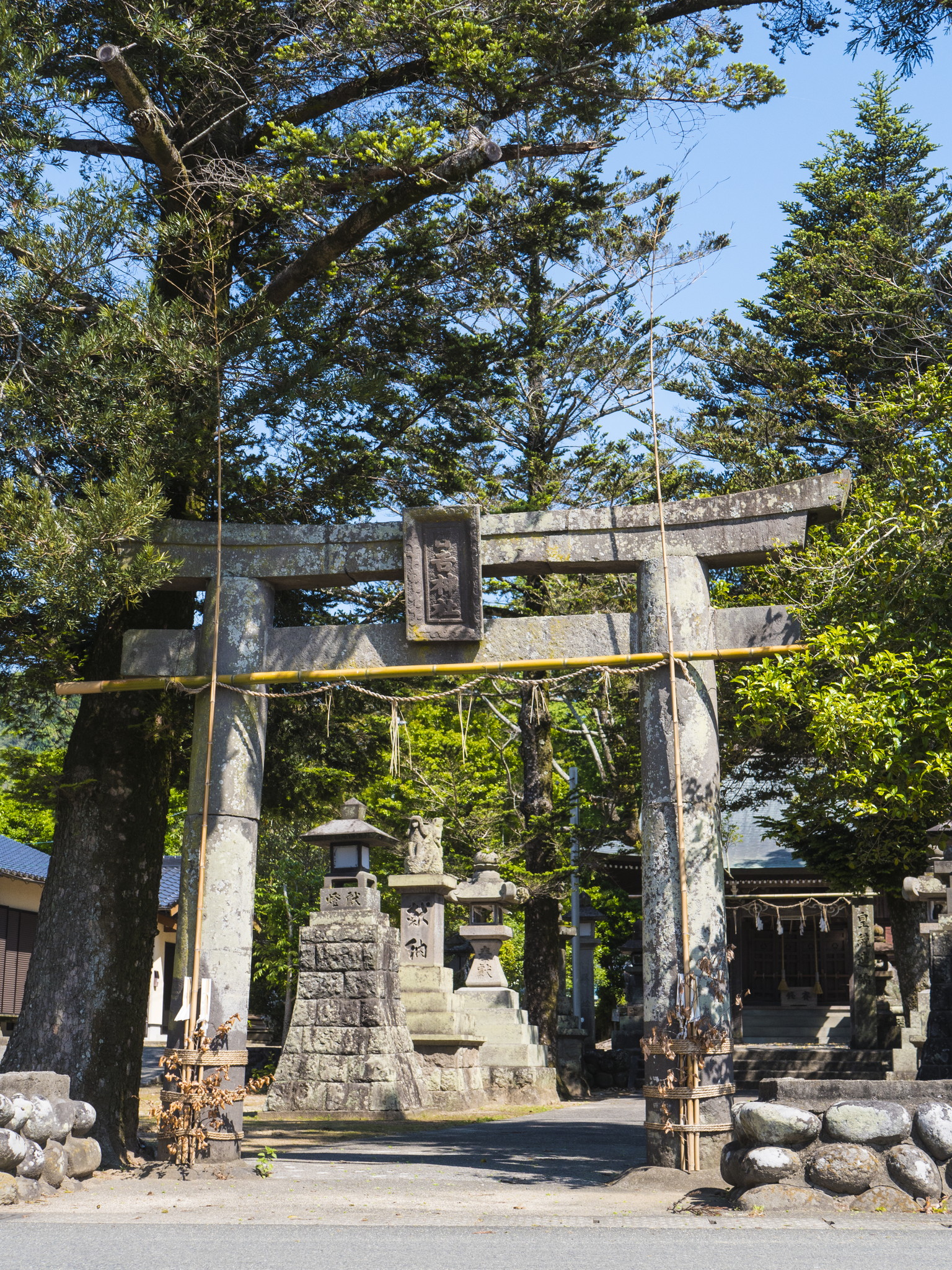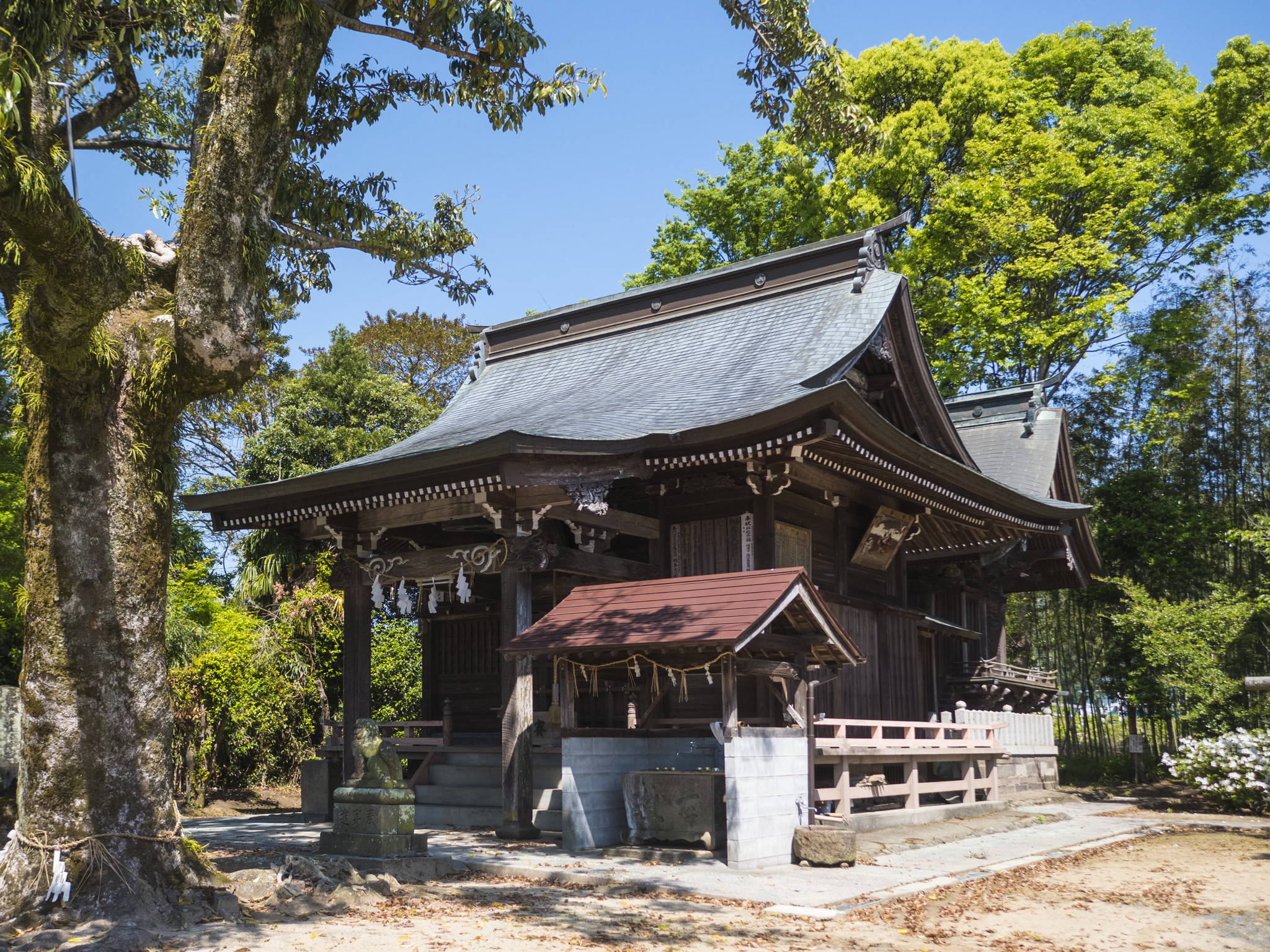 旧久喜宮村、若市村、古賀村、寒水村の産土神であり、その初めは天武天皇の白鳳年間に、近江の国、今の滋賀県大津市坂本にある日吉大社より、古賀村の上野という所に勧請したといわれています。その後、久喜宮村の原庄つまり現在の原鶴へ遷座しました。