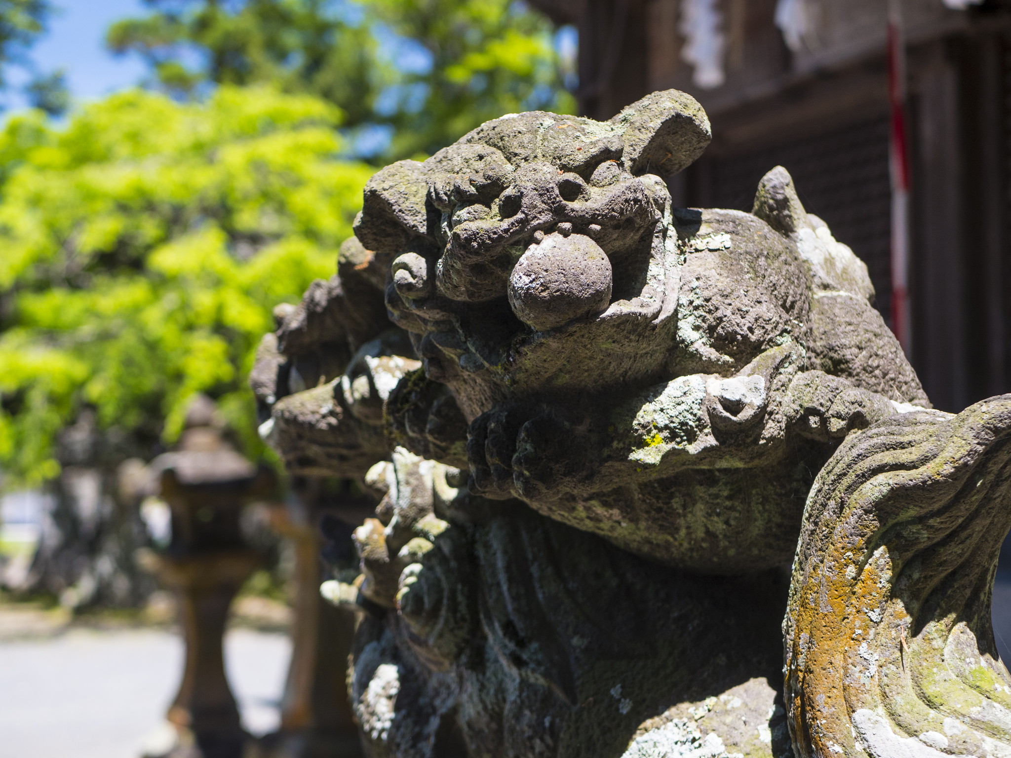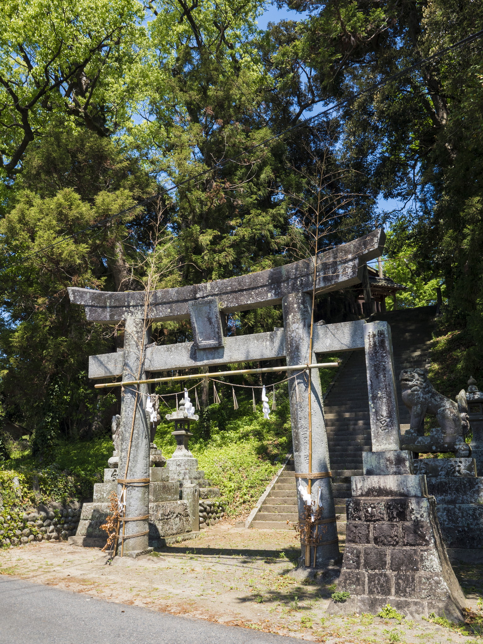 志波の産土神。昔時三笠郡竈門山の神社を遷し奉る。由緒の旧記は天正の頃、大友軍の兵火にかかり詳細不明。筑後川から真っ直ぐ上がってくる参道と階段は海神に纏わる神を祀る社として厳かなロマンを感じさせ、参道の脇の連理の楠や県の天然記念物に指定されている社叢も深い趣を醸し出している。